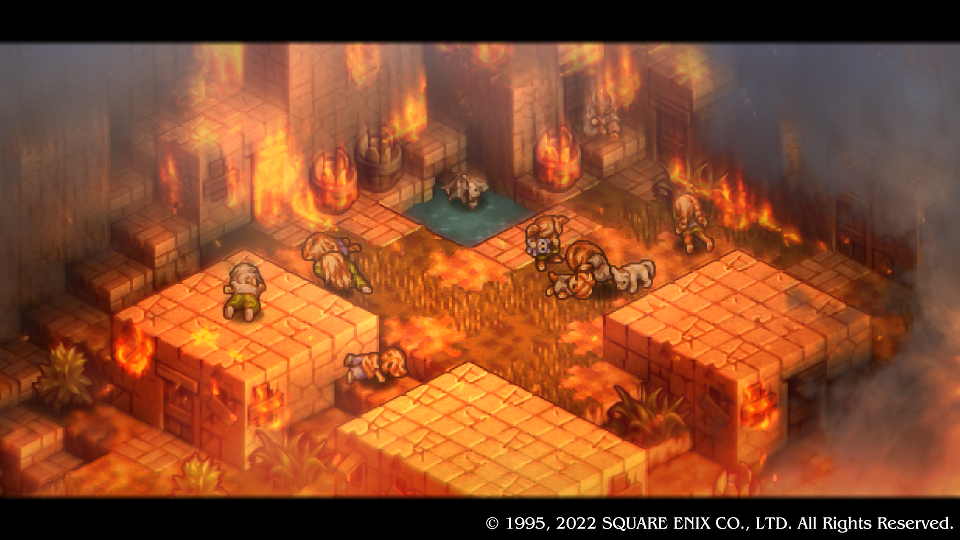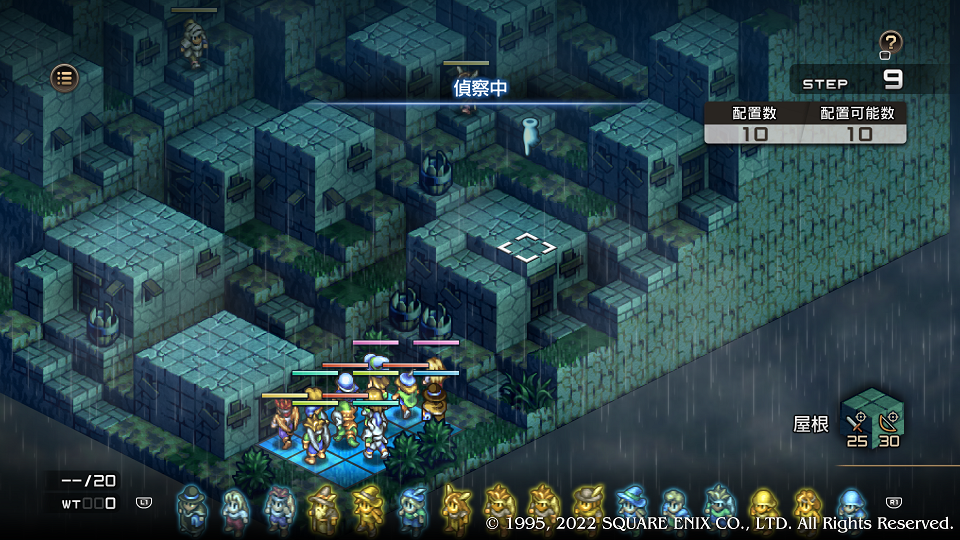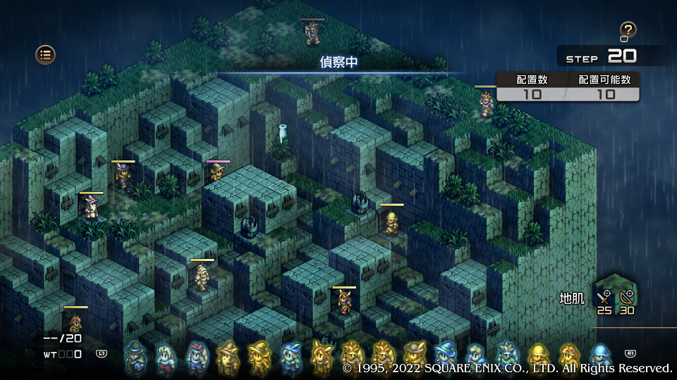 ここは後衛・魔法ユニットがほとんど役に立たない。高所まで上がれる1stepの道が右後方の階段しかないからだ。近接前衛ユニットは真正面の2step段差から上がっていけるが、右後方の階段を通ると時間がかかる上に前衛ユニットとの距離がありすぎて合流するまで右高所のホークマンからガンガン弓で射撃されることになる。よってオレのごちゃごちゃ脳内CPUがはじき出された答えは、、、、まず前衛ユニットと飛行ユニット中心でマップ左の高所を攻める、前衛は敵前衛ユニットと素直に衝突、飛行ユニットは高所にいるウィザードや弓を仕留めに行く。
