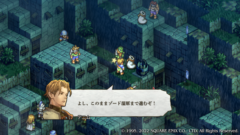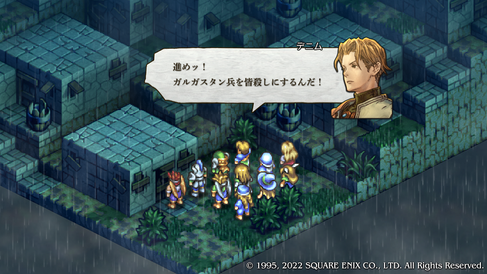 要は結果にコミットできなかったのだ、これは完全にマズイ…。そしてロンウェー侯爵の妙案が炸裂する、細かいことは言わないが要はめっちゃフェイクを入れて2方向から攻めようということだ。本体がどちらか分からないよう実は囮の部隊に英雄デニムを率いらせ、ガルガスタンのライフラインである港町を封鎖して経済的なプレッシャーもかけるという端から聞いたら非常にえげつない作戦で一縷の希望があるように見える。ただ侯爵おじさんがなんかもう既に焦ってるようにしか見えないんだが大丈夫だろうか。