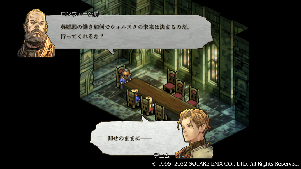 分かりやすいダメダメおじさんになってしまった侯爵はデニムに泣きついてくるが、我らが英雄は死んだ魚の目をして二言返事でこれを承諾する。
