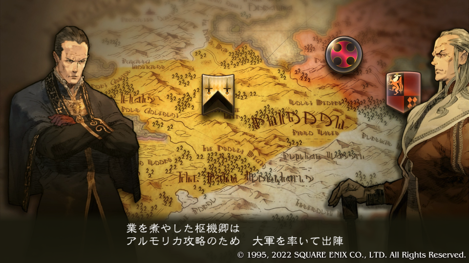 レーウンダ・バルバトス枢機卿はガマンできなくなって出陣、大軍で潰しに来るとか相変わらずめっちゃ冷たそうなおじさんだな。デニムにその知らせが入る、『ゴリアテの若き英雄』デニム・パウエルは今やウォルスタ軍の『新たなる指導者』となった。より一層の苦難が彼を襲うことになるが、人間は苦難を体験しないと成長しない、その中でもうダメだと思ったときに助けてくれる本当の親友や仲間を手に入れて大きくなっていく。「かわいい子には旅をさせよ」ということだ。だいたいヴァイスがそうだ、めっちゃ良いところで現れた。これが本当の良いとこ取り親友だ。