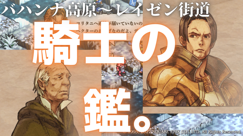 ガルガスタン軍の女性騎士を部屋から渋々退出させ、自分の父親であるブライアムとの話。この二人は枢機卿の統治する今のガルガスタンを憂いており自らの家名・誇りを守りながら命をとして国を変えようとする者、今回の作戦はすぐに見抜かれておりブリガンテス城を明け渡しデニム達がコリタニ城まで攻め入り枢機卿を打ち倒すことを望んでいる。しかし自分たちがデニムと協力して枢機卿を打倒するのではなく、騎士の忠義を守りつつ命を散らしてでも本気の戦いの中で変革の礎となることを選んだ。自分の死を覚悟するとはなんという騎士道精神、ウォルスタのレオナール的存在になるガルガスタンのヘクター・ディダーロ。オレには国家に尽くすとかなんとか全然ないが、なんかかっこいい。