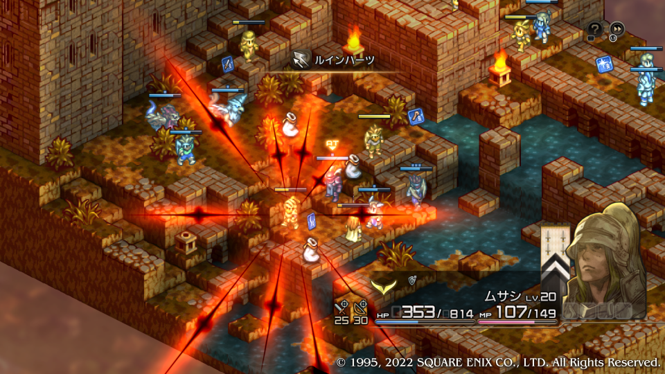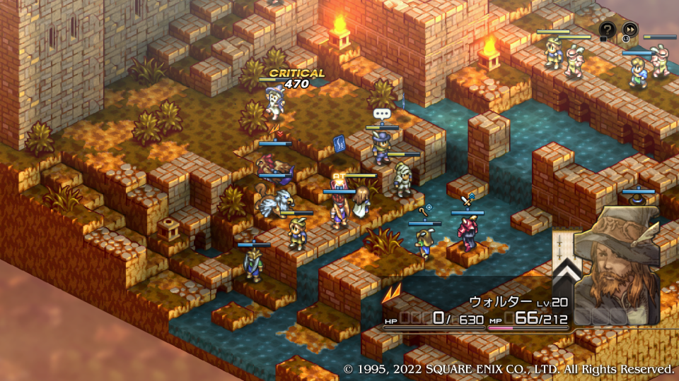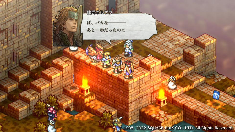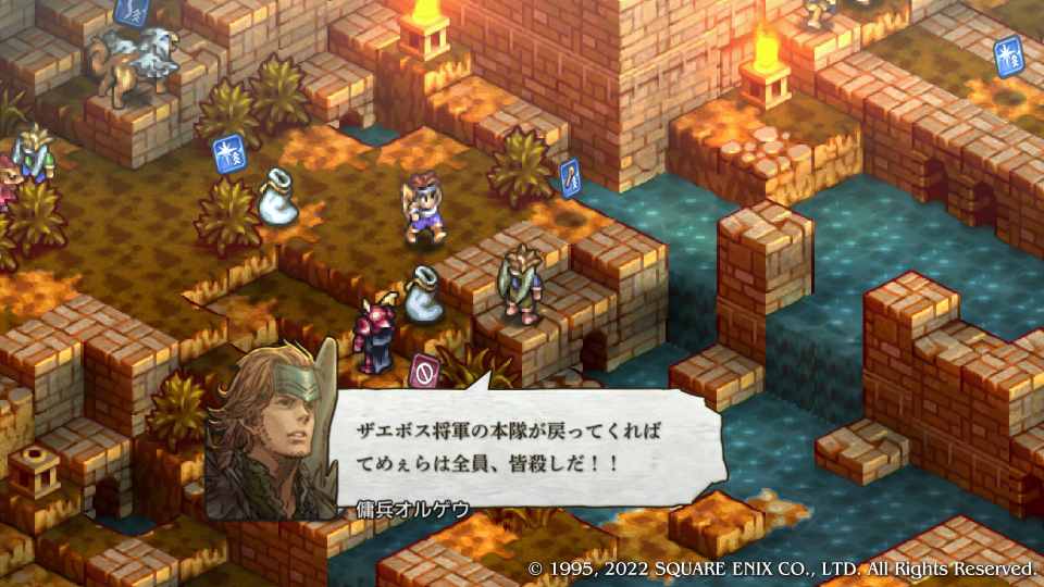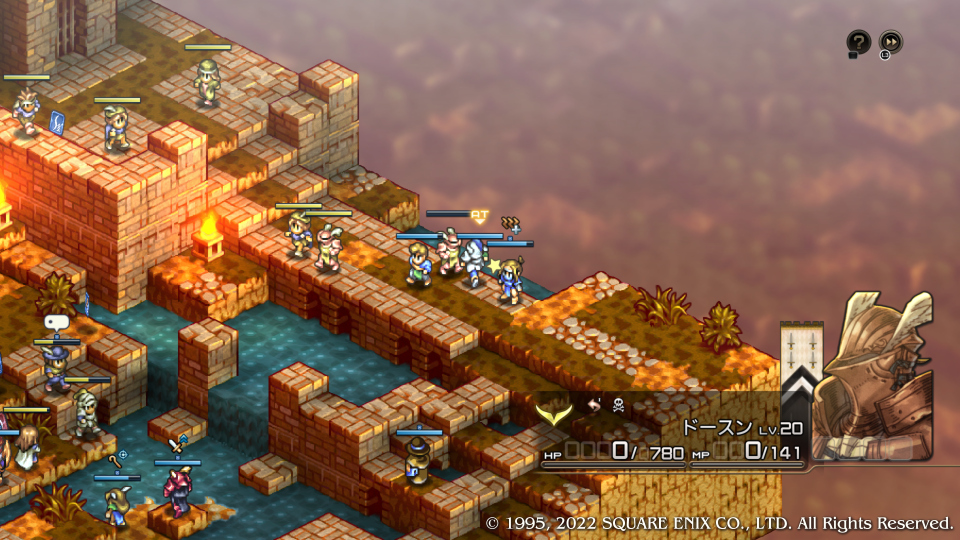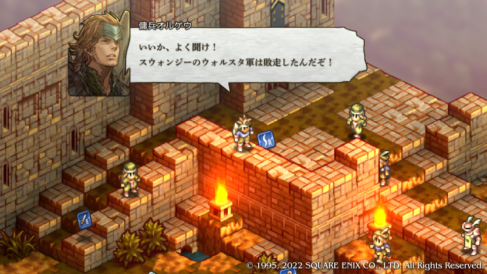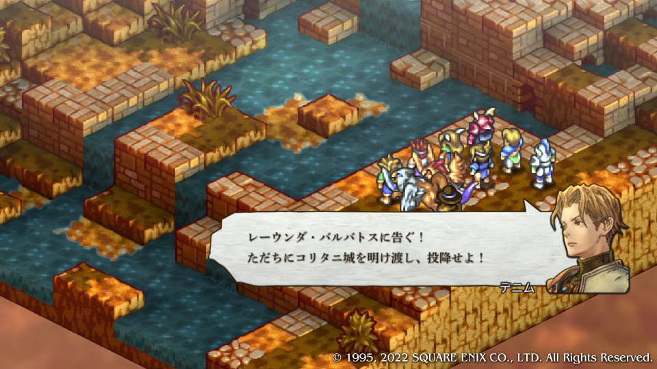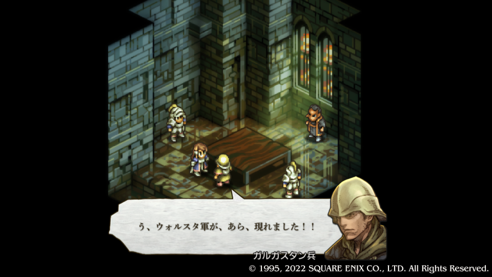 ここで初めてデニム達はスウォンジーに向かったヴァイスたちが既に敗走してしまったことを知る、あと一歩持ち堪えられなかったがもう敵の本丸に刃が届いている。この城を落とせばまだ可能性ある、という合いの手で神父がデニムにクイックムーヴをかける、まさに急げということだ。