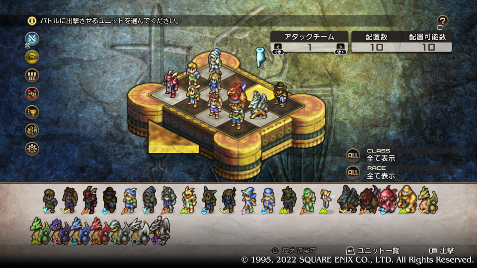 こんなマップだったっけ、いろいろ言いたいことはあるが飛行タイプ中心のテイマー部隊を主力にすることにした。お城の定番防御・堀を避けて城門に向かう迂回チームは2~3人程度でいいだろう、下手したらもっと少なくていいかもしれない。デニムに城門入口まで強引なドリブルさせるか・・。
