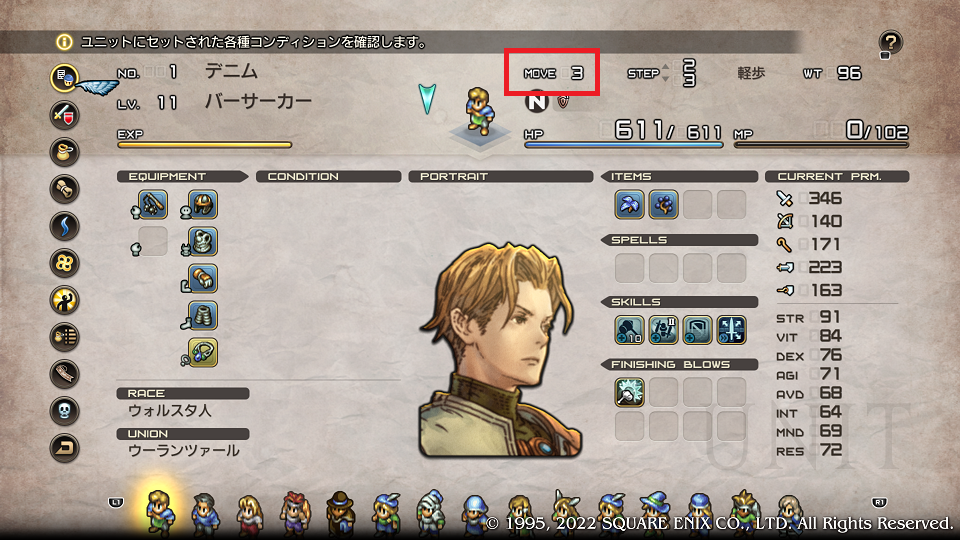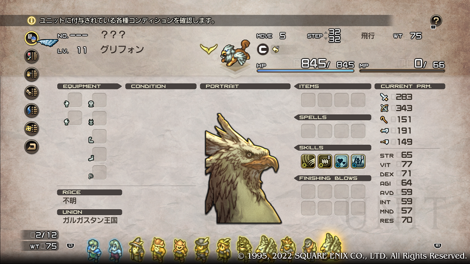 アイテムはスーファミでも持てたような気がするが、どうだったか全然記憶が無い。HPが多く防御力が低いので恐らくデコイ型のタンクとしてグリフォンは機動力でヒット&アウェイすれば前衛がかなり動きやすくなりそうな気がする。MPが溜まれば「突進(移動力+2)」で急襲して必殺技なんてこともできる。あとはタコと竜がどんだけ固いかだな・・・。ユニット枠が100枠もあるのでシチュエーションで色んなユニットが使えそうなのは楽しみで仕方がない。前回がんばって考えてた成長補正パラメータの管理やらなんやらどうでもよくなったのは、歳を取ったからだろうか。思えば以前はどんだけ強いかを相当気にしていた気がする。そんなことよりバリエーションのある部隊を組むことが今の楽しみの一つである。
